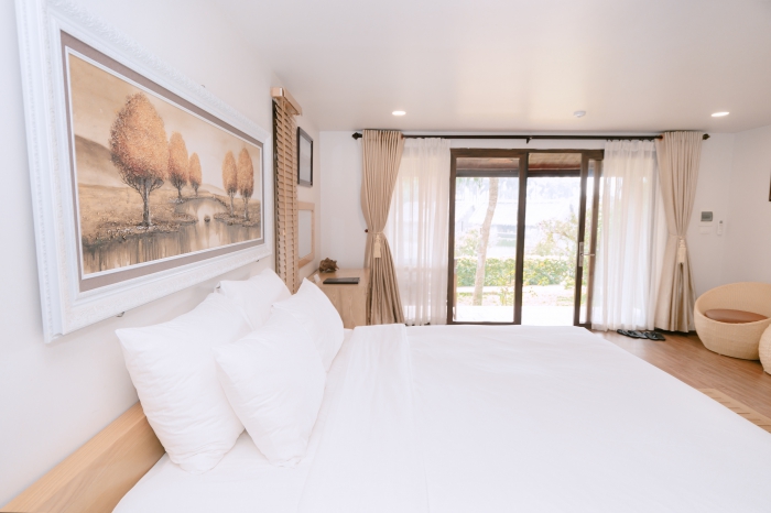 Loại phòng là những ngôi nhà nhỏ mái ngói đỏ nằm riêng biệt quanh sườn đồi được thiết kế theo kiểu nhà Bắc Bộ có 01 giường ngủ đôi với diện tích 40m2/phòng. Xây dựng theo hướng kiến trúc độc đáo, mái ngói đỏ và xây bằng nguyên liệu chính toàn bộ là gạch đá ong, với tiện nghi nội thất đẹp, sang trọng tiêu chuẩn 4 sao và ấm cúng. Không gian rộng thoáng mát, tổng thể như một Làng Cổ Đường Lâm thu nhỏ nằm quanh co dưới những tán cọ hướng nhìn ra mặt Hồ rộng với những làn sương khói lam chiều mờ nhẹ như những đám Mây huyền ảo…: